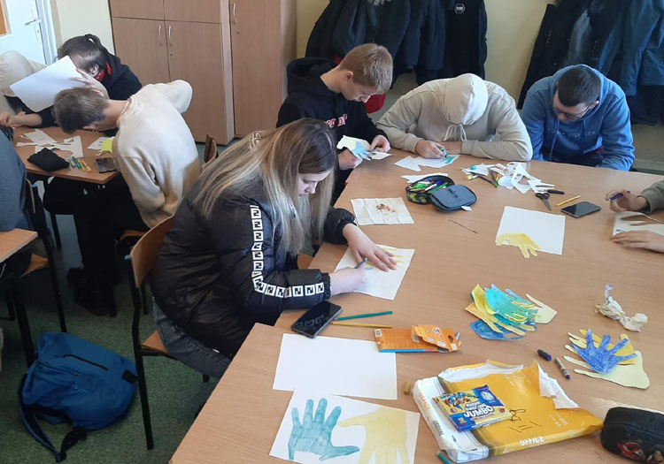 Kolejny raz wyrażamy sprzeciw wobec brutalnego ataku Rosji na Ukrainę i codziennie w różny sposób pomagamy Ukraińcom. Klasa 2c (technik spedytor) wraz z wychowawcą p. Mirosława Czerwinską-Kożuch wyraziła wsparcie dla Ukrainy wykonując serce z dłoni.